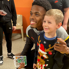 Comme chaque année, près de 1000 cadeaux ont pu trouver preneurs, notamment lors de la distribution réalisée ce mercredi. Comme à l'accoutumée, le service de Pédiatrie du Pavillon de l’enfance de l’hôpital de Lens et le Centre de soins Saint-Exupéry de Vendin-le-Vieil ont ouvert leurs portes au RC Lens, plus précisément à Sarah M’Barek, Jimmy Cabot, Tess David, Wuilker Farinez, Jennifer Meunier, Suzy Morin, Yannick Pandor, David Pereira da Costa, Florian Sotoca et Emma Smaali. Pour sortir les enfants malades de leur quotidien, ils ont joué au Père Noël, aidés par des membres des associations de supporters des Red Tigers et des Wolf.